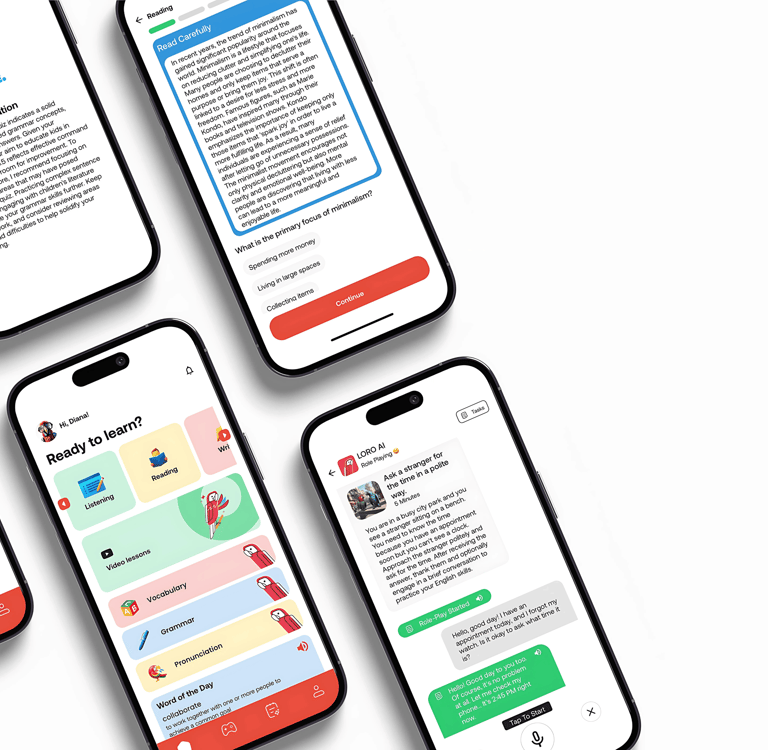 Set your goals and topics, and Loro tailors lessons to match your level and interests.
